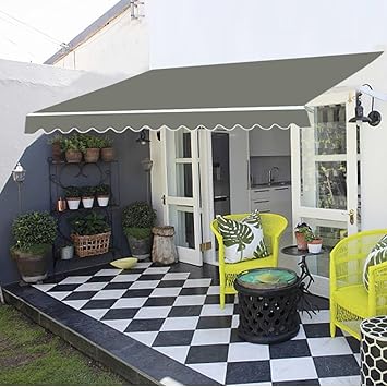 Greenbay Grey 4 5m X 3m Patio Awning Manual Garden Canopy Sunshade