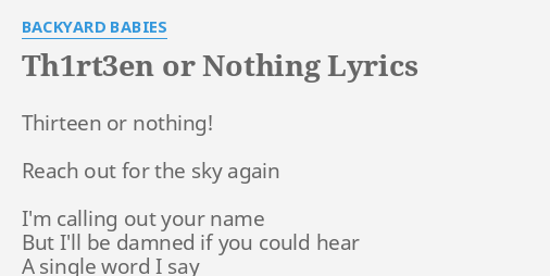 Th1rt3en Or Nothing Lyrics By Backyard Babies Thirteen Or